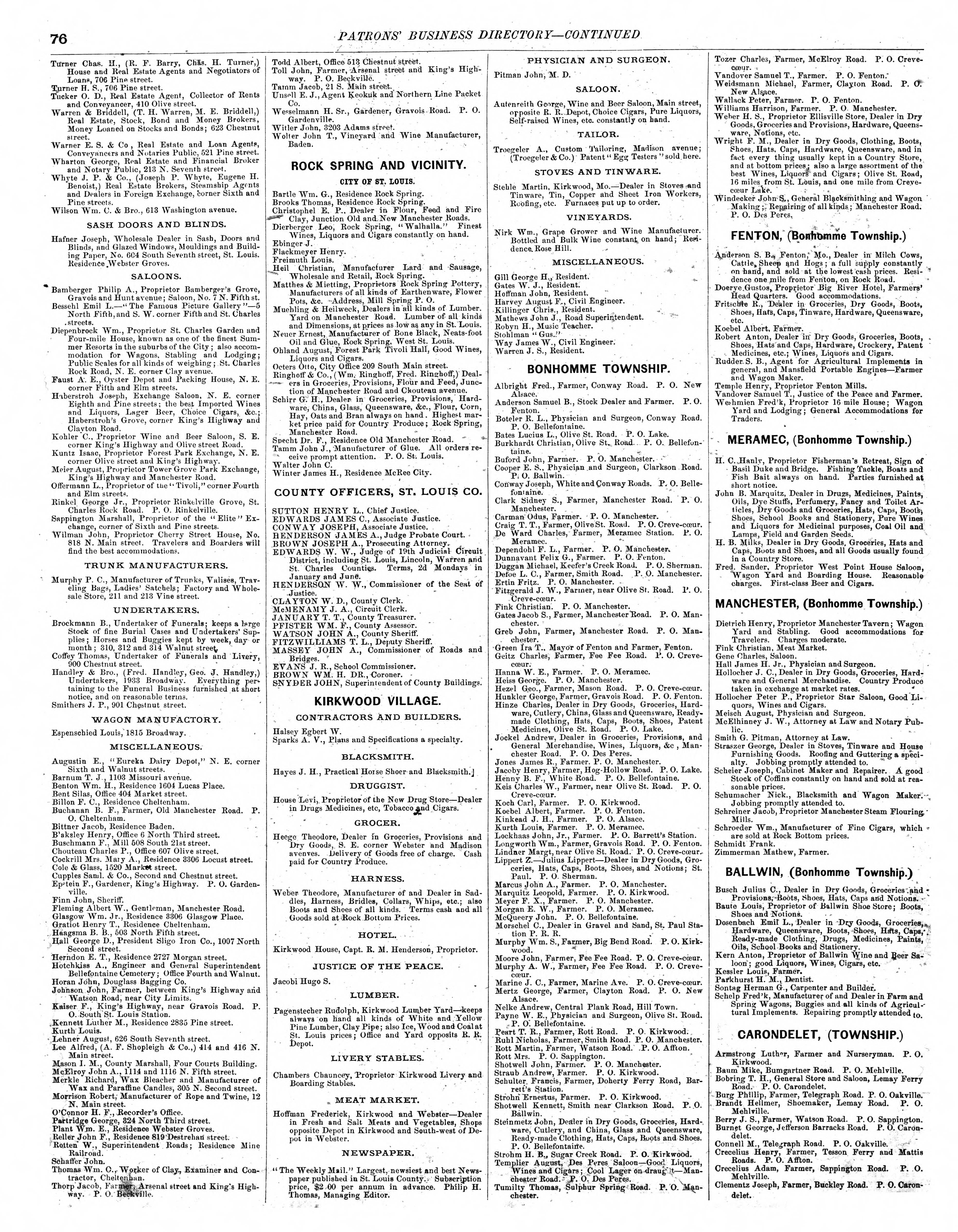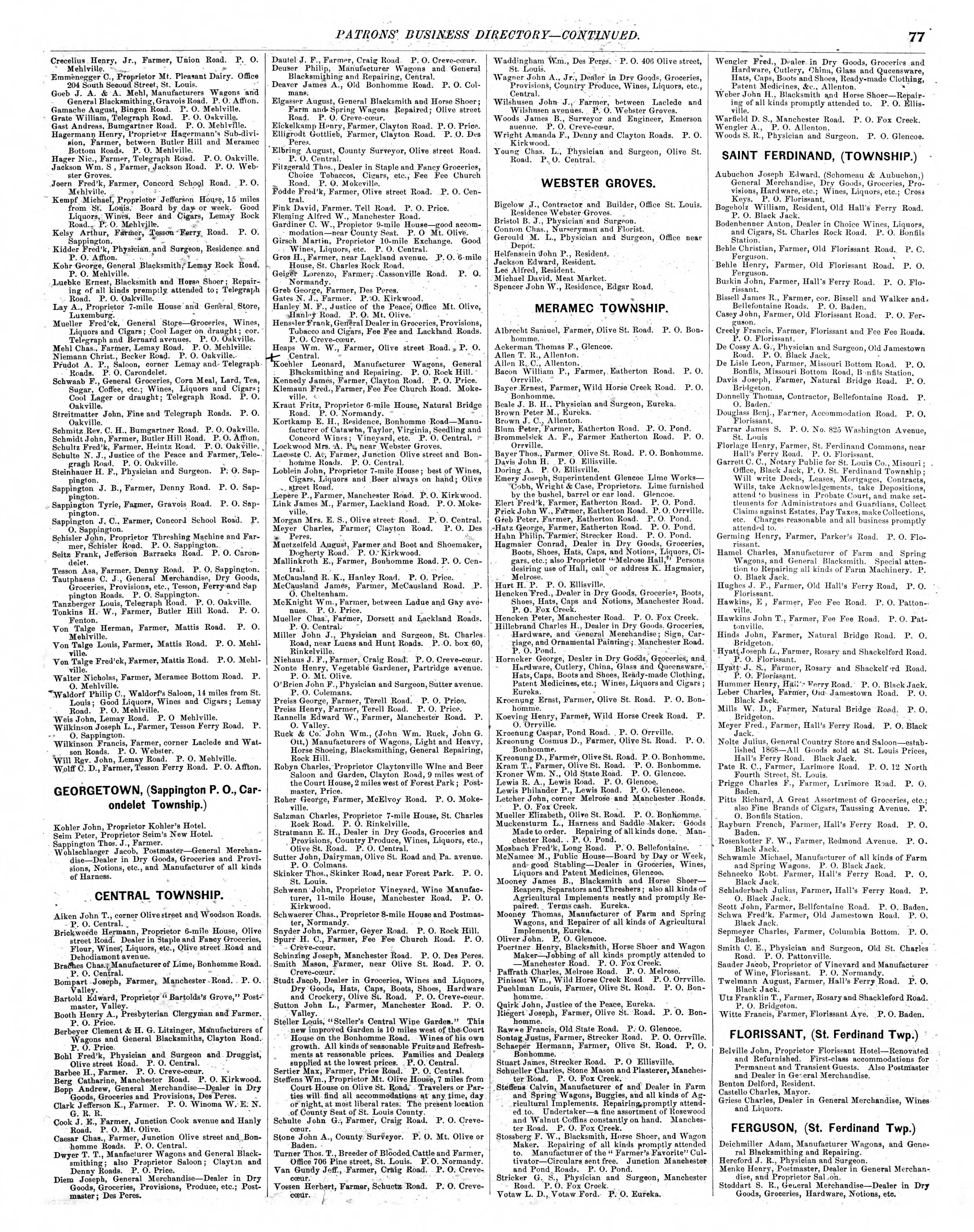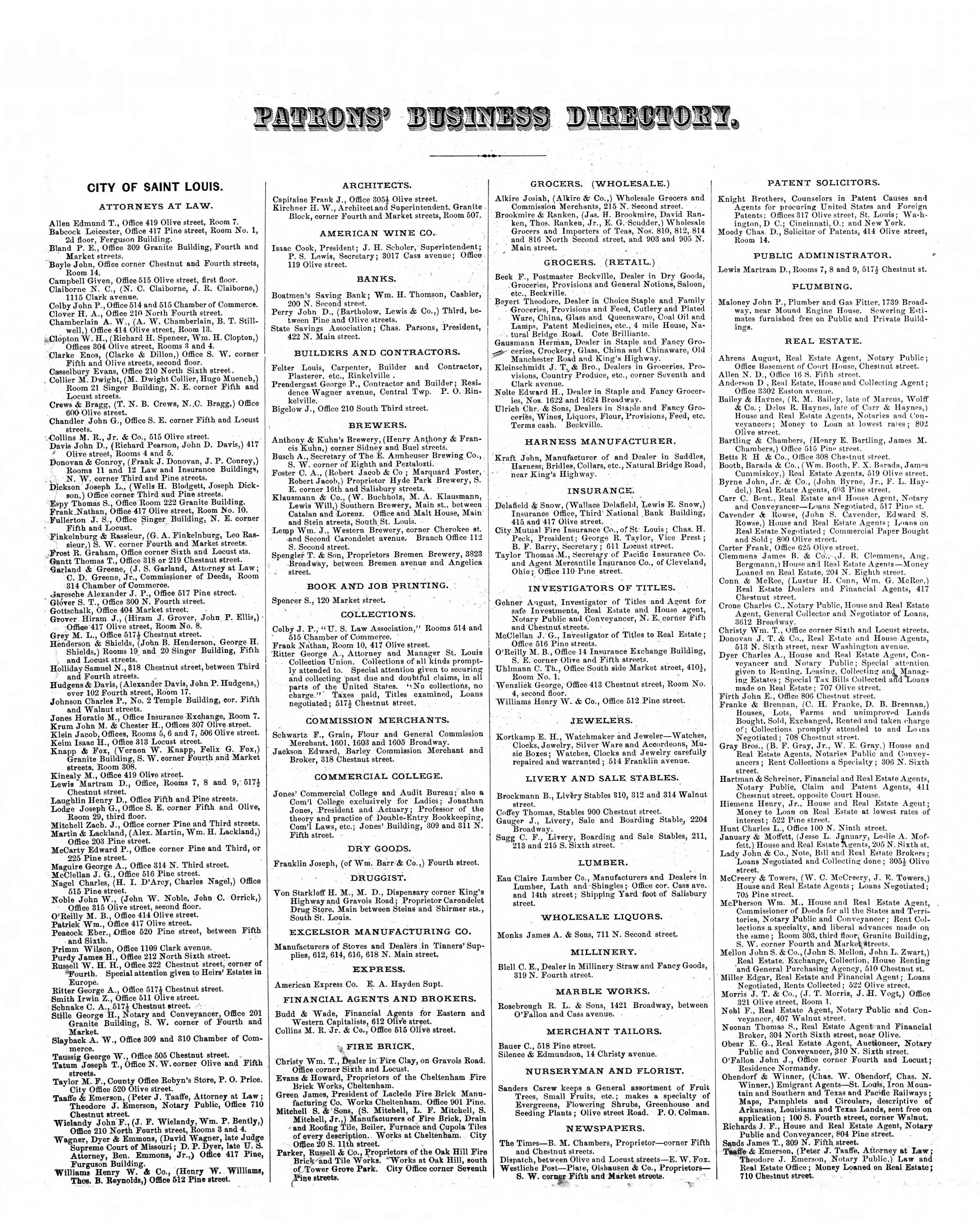 Patron’s Business Directory index of Pitzman’s New Atlas of the City and County of Saint Louis, Missouri